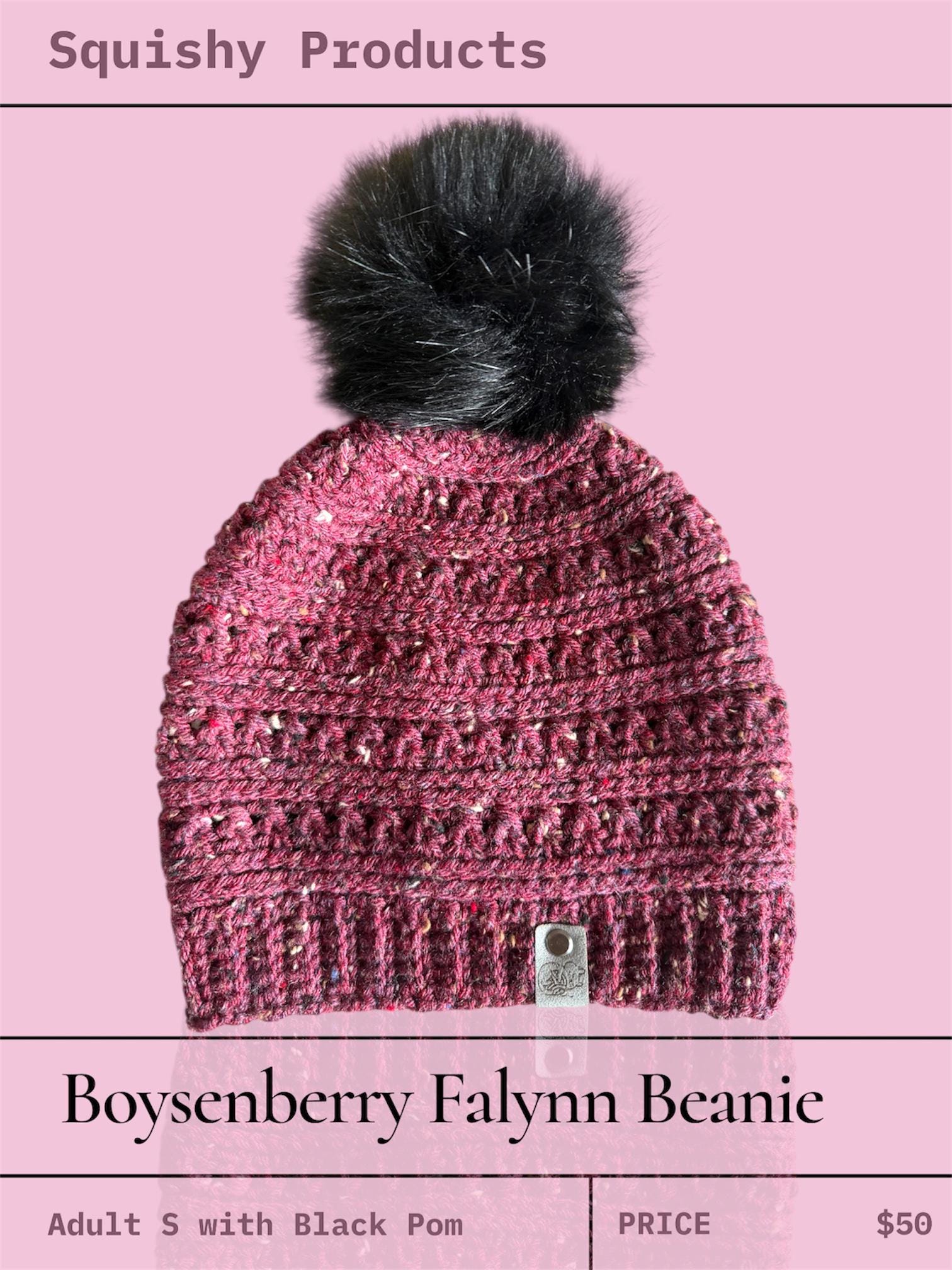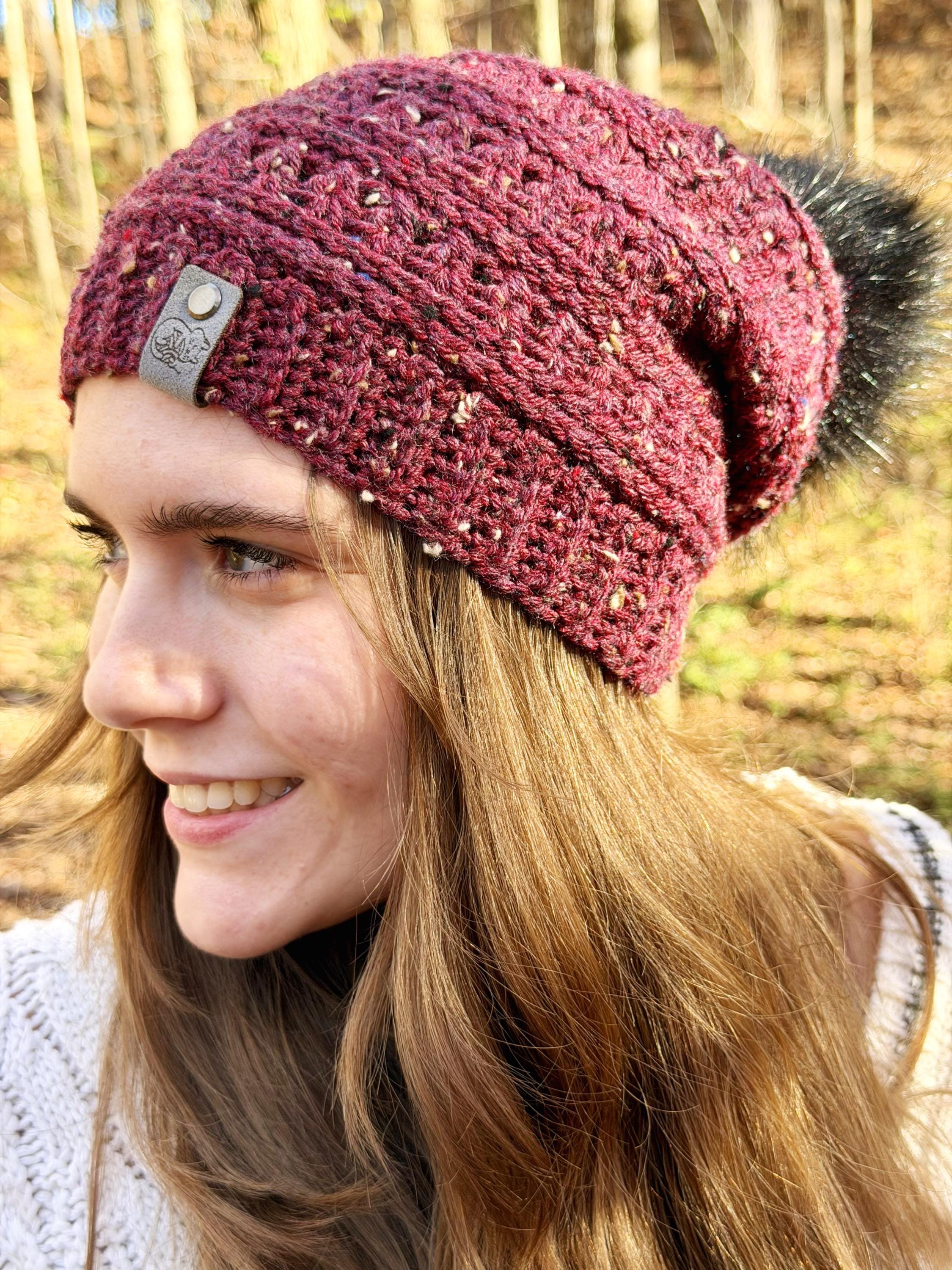Be warm and fabulous this winter with a Falynn Crochet Beanie. Features a wonderful texture without being too bulky, a ribbed edging and can be made fitted or slouchy to suit your style. Topped with a luxurious black faux fur pom-pom, the hat exudes both warmth and style. Ideal for chilly days, this beanie offers comfort, versatility, and a hint of seasonal flair, making it a great accessory for any winter wardrobe.
